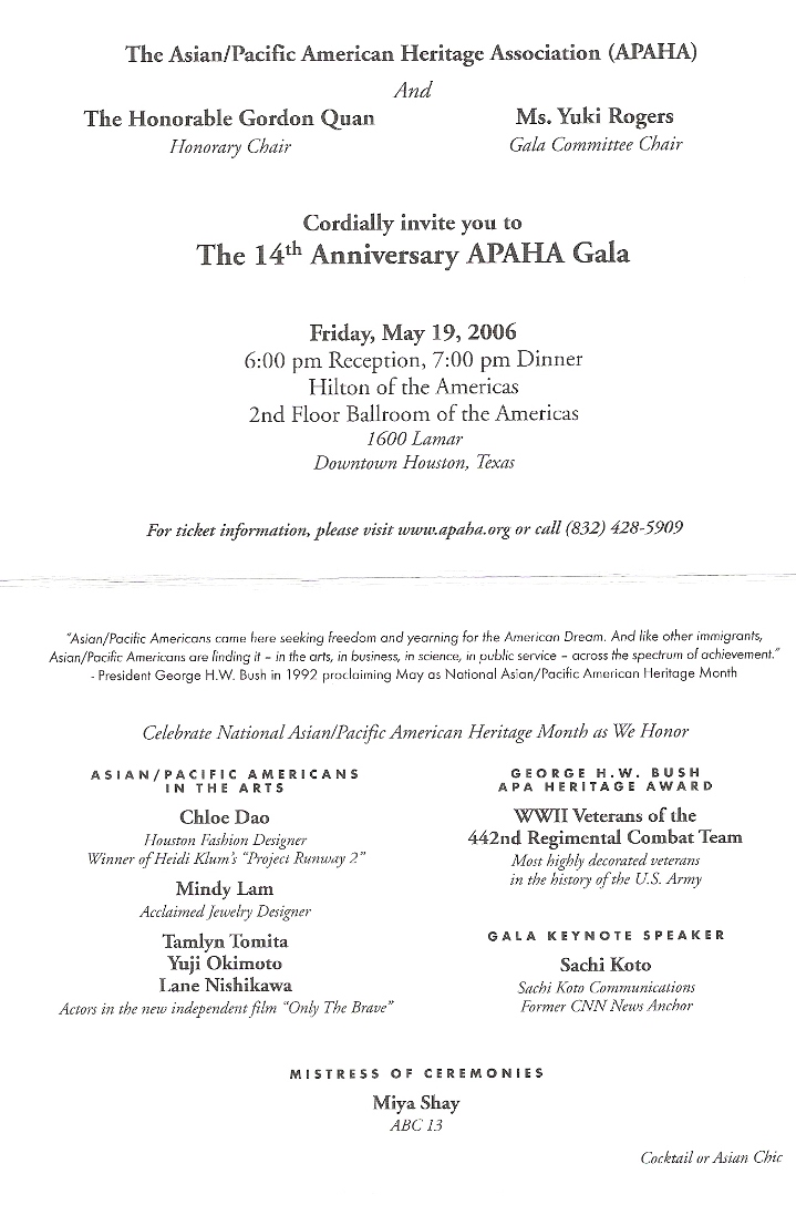 442 veterans honored at APAHA Gala, May 19, 2006 Only the Brave, film of the 442, May 20, 2006 Photo Tour Texas Road Names