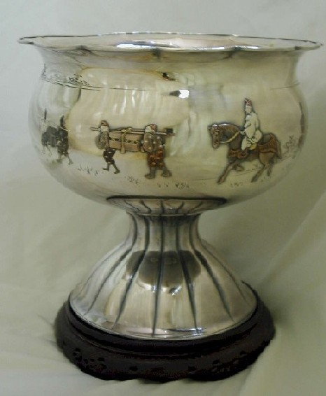 to the Japanese-Soviet Petroleum Company ‘In 1932, the Japanese Government entered negotiations with the Soviet Union, then the second largest oil-producing nation in the world, to drill for oil in Siberia and import part of its production to Japan. Count Kojiro Matsukata of the Nippon Petroleum Company participated and founded the Japanese-Soviet Petroleum Company in 1933. He advised the government officials to invite Kishi from Texas and add him to the delegation as an oil production expert. Before the Pacific War broke out, the Nippon Petroleum Company awarded Kishi a large silver cup and thanked him for his, “patriotic service through oil.”’[2] |