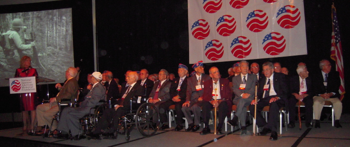 “Homecoming for Heroes Tribute Dinner” was held on November 1st at the Hyatt Regency in Houston, Texas, for the historic reunion of the surviving World War II veterans that met 65 years ago when the 442nd Regimental Combat Team (American soldiers of Japanese decent) suffered massive casualties to rescue the men of the 141st Infantry Regiment of the 36th Texas Division trapped behind German lines. |