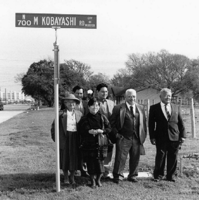 (front row, left to right) Lily Kobayashi Landress, Haruko Kobayashi (Herbert's wife), Riki Kobayashi, Herbert Kobayashi; (back row, left to right) Brock & Alec Kobayashi (Riki's sons). Lily, Riki, and Herbert are siblings, three of the eight children of Moto & Mitsutaro Kobayashi. (Of the five others, Hope Kobayashi & Mitsu Kobayashi Iwata are still alive, Tokuye & Ty Kobayashi died in 1989, and one child died as an infant.)