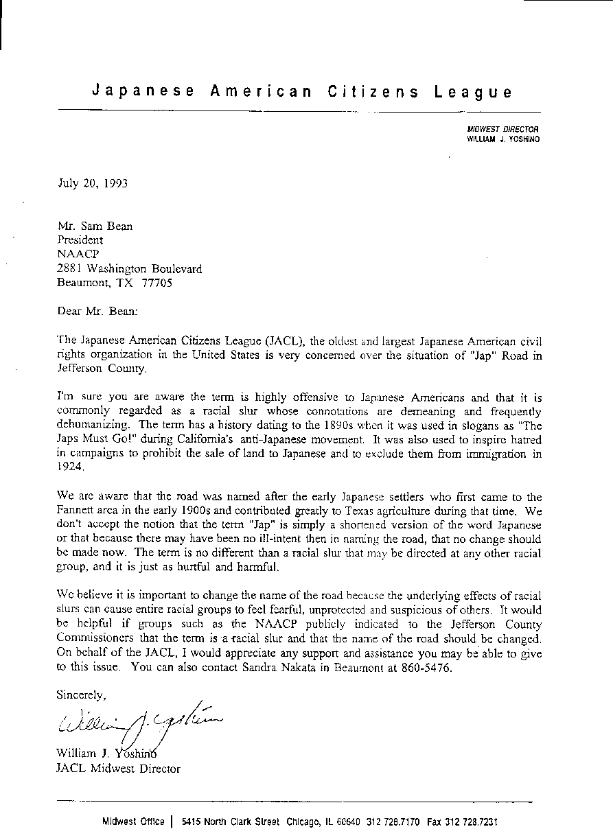 by the Jefferson/Orange so as to truly honor the Japanese pioneers