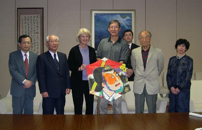 T. Kobayashi, General Manager; Kuniaki Nozaki, President, The Hokuetsu Bank; Darlene and George Hirasaki; unidentified; Takashi and Saeko Hirasaki |